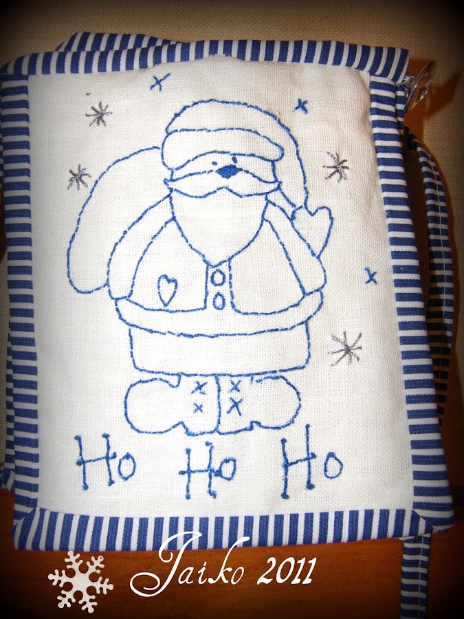Como casi todo en mi vida, la época navideña también es azul........... azul, blanca y plateada............ y aunque la propuesta original era bordar en rojo .........lógicamente Anita, es redwork..... a mi me va más el bluework.... k ? algún problema? posss no, yo azul!!