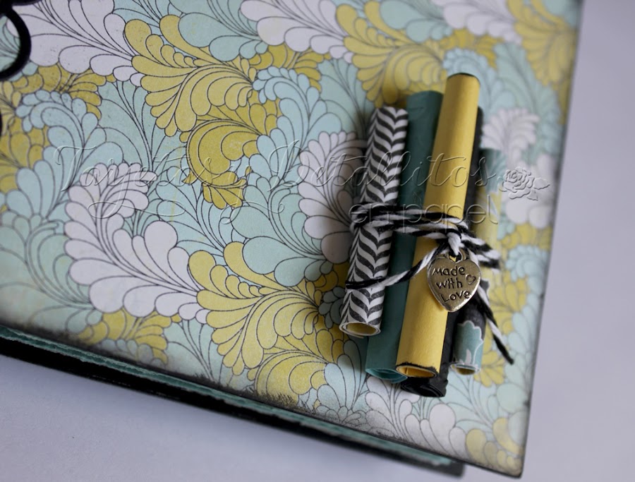 Se trata de un álbum muy sencillo, encuadernado a mano y que queda muy elegante, en especial, en esta combinación de colores que me gustó mucho. Ya esta colección la había usado antes en otro álbum, pero es que estoy enamorada de estos papeles.