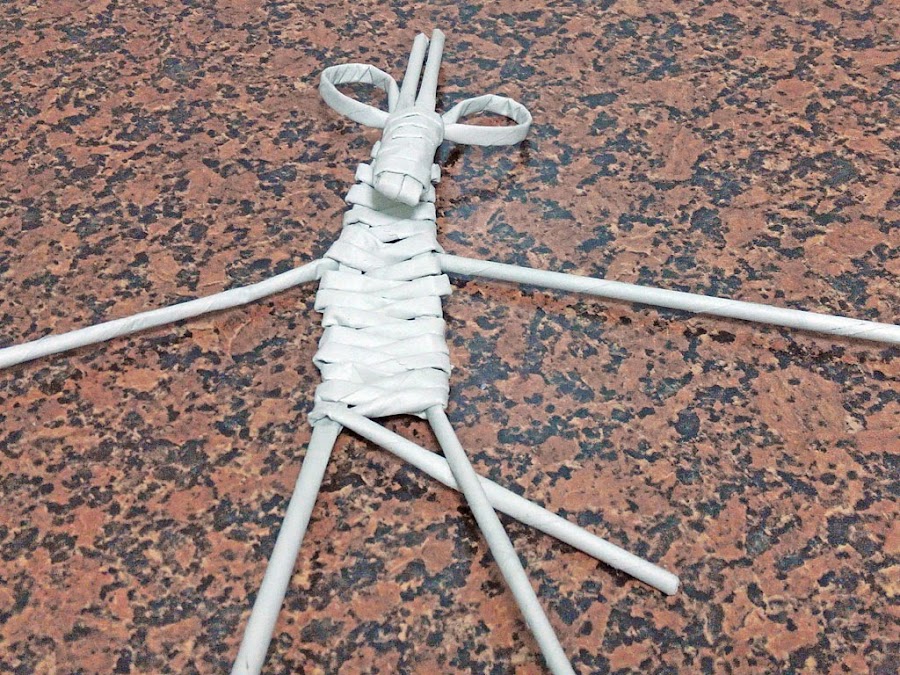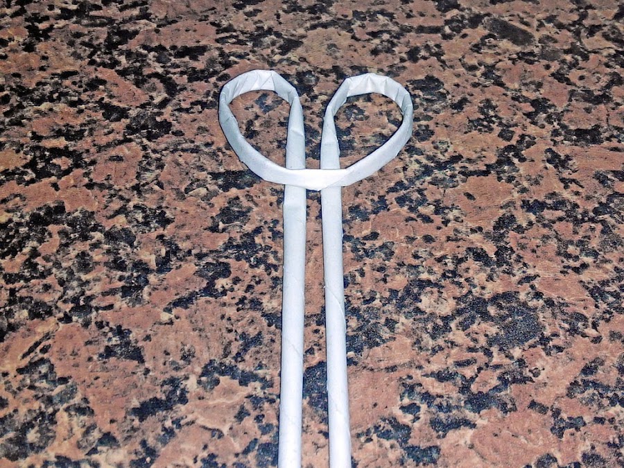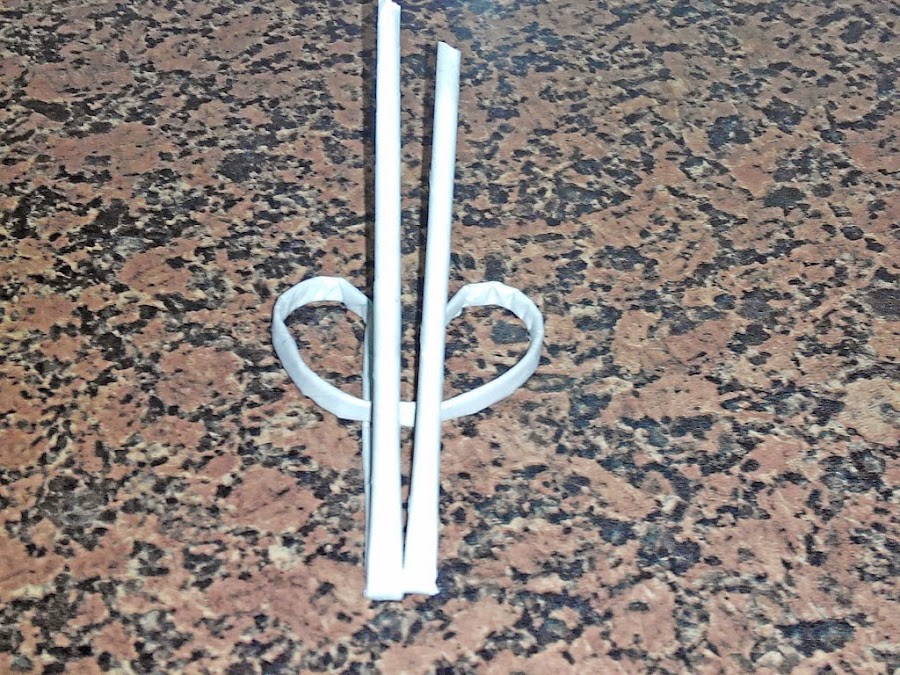 Pasamos los dos extremos del rollito más largo hacia atrás para empezar con el cuerpo del reno