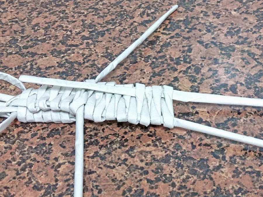 Después de haber entrelazado el nuevo rollito seguimos tejiendo unas vueltas más.
