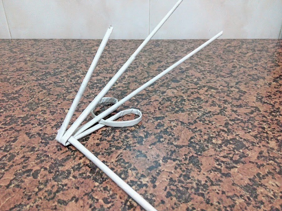 Introducimos el extremo de otro rollito en medio de los doblados y echamos una gota de cola.