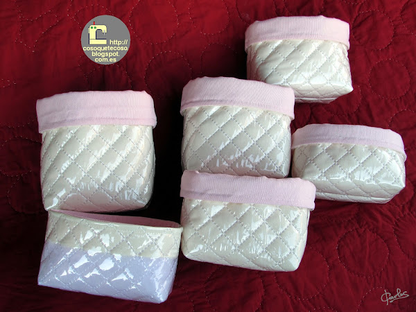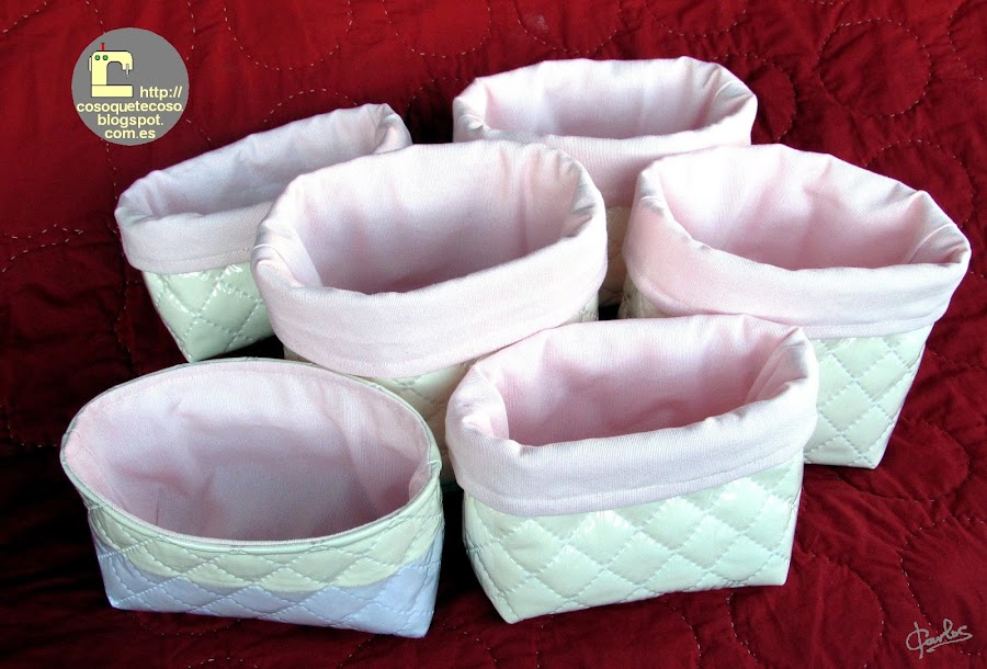 Probé con tela plastificada y loneta de lunares rosas, uff, no, no es lo que busco.