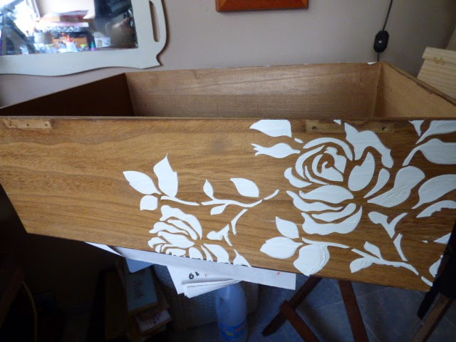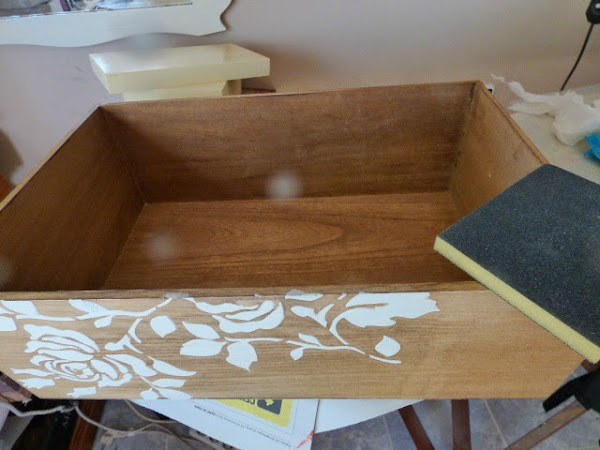 no sé....le veía un aire japones al cajón que no me molaba nada asi que decidí darle una pasadita de Chalky tono encaje muy diluida en agua. Le daba y retiraba casi a la vez con otro paño