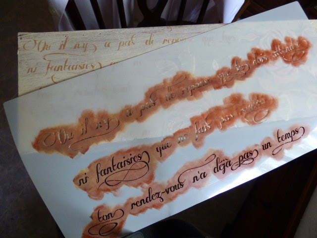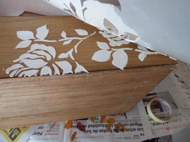 una vez blanqueada toda la caja en los laterales grandes hice el estarcido con este texto