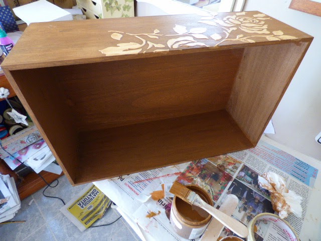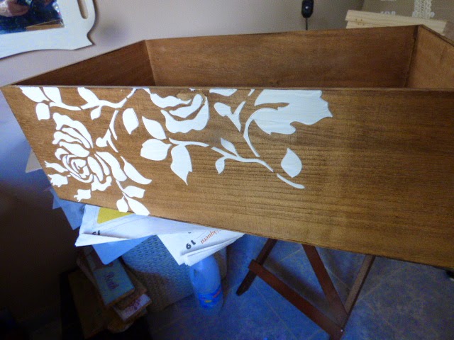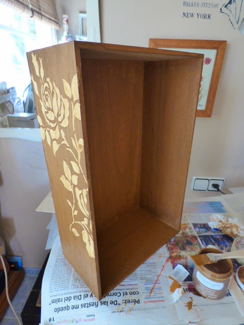 He sombreado los bordes de toda la caja con la misma acrilica marron clarita que he hecho los estarcidos