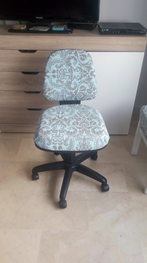 Como se le nota el cambio, y como os he dicho rápido y fácil se ha renovado la silla con un trocito de tela.
