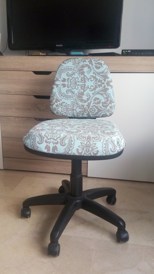 Hola, hoy os traigo un trabajo que se hace rápido y fácil, me he decidido a renovar o "restaurar" la silla de oficina de mi cari, que también era reciclada anteriormente de una persona que se le mojó y nos trajimos, así que hace tiempo que le hacía falta una renovación.