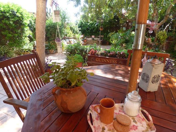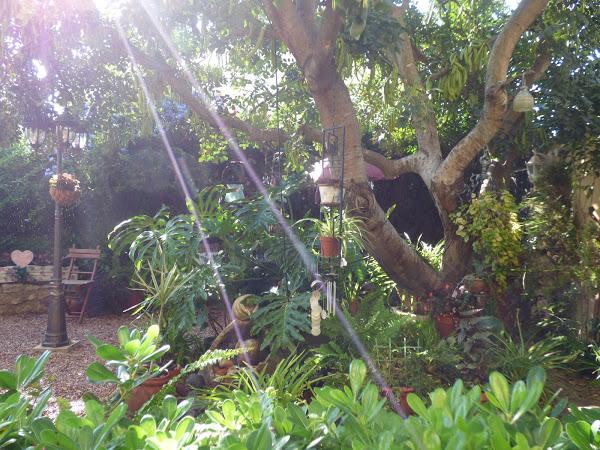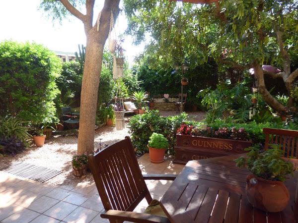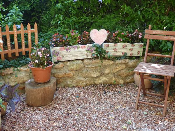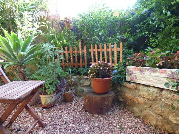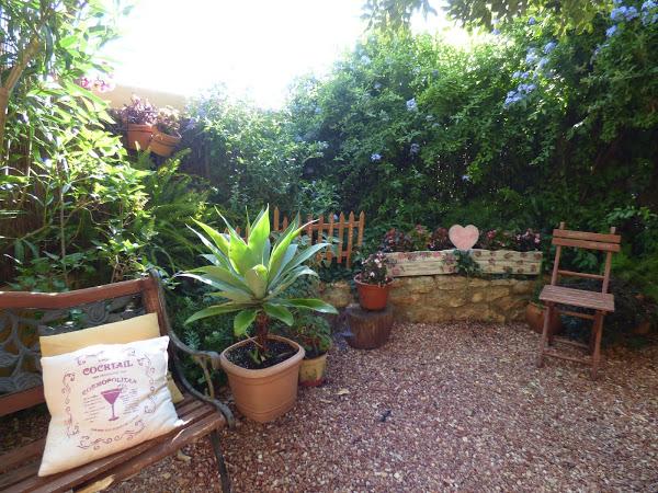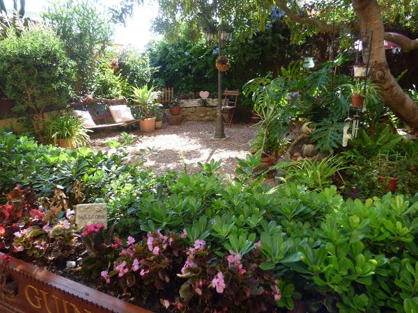 Este rincón del jardin era especialmente "oscuro". Todo muy verde, pero nada de flores. Creo que ha mejorado poniendo las jardineras de tonos claros con las Begonias que he plantado en ellas, espero que florezcan mucho y mucho tiempo.