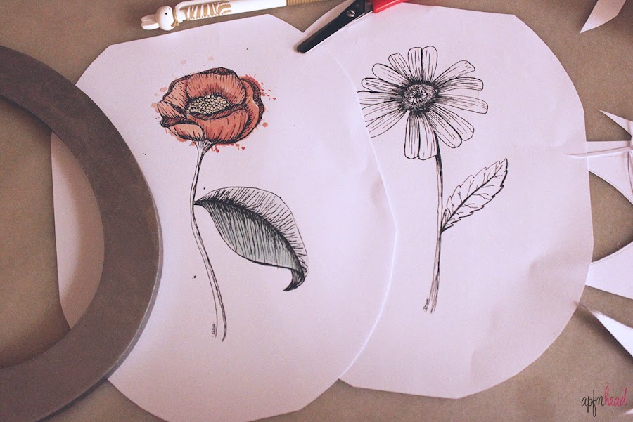 Hemos escogido dos láminas florales, seguro que te son familiares porque son las flores que dibujé con tinta hace un año y también las que te voy regalando con los calendarios que hago mes a mes.