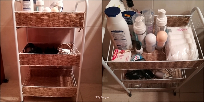 Por otro lado, una tarde de lluvia, empecé a renovar un carrito de fruta para hacerlo más rústico y darle una nueva ubicación en el cuarto de baño.