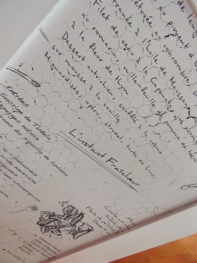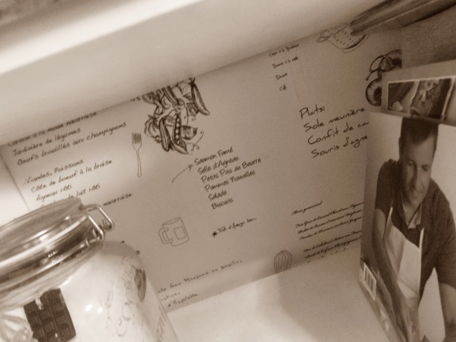 Fue ver este papel de empapelar con recetas en francés y enamorame perdidamente