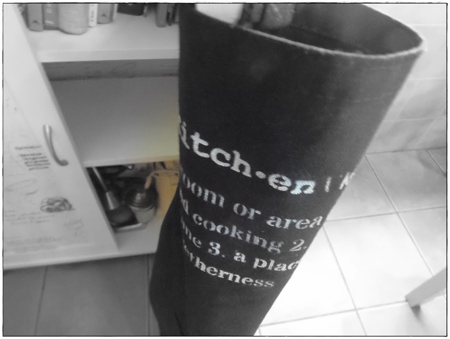 Y esto es un delantal qué ahora me ha dado por decorar todo con definiciones del diccionario,tanto en español cómo en inglés jajajaja...ya os lo enseñaré en otra entrada..mientras ando diccionario en mano buscando el significado de las palabras para hacer plantilla y pintarlo en paños,cojines..delantales..