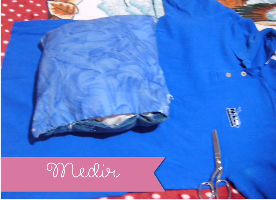Vamos a comenzar midiendo el cojín en la playera para saber cuánto vamos a necesitar, como mencioné necesitas una grande pues así podrás cubrir por totalidad el cojín, yo estoy utilizando una de hombre de talla grande, también puedes conseguir algunas en muy buen estado en la ropa de segunda mano y suele ser muy barata.