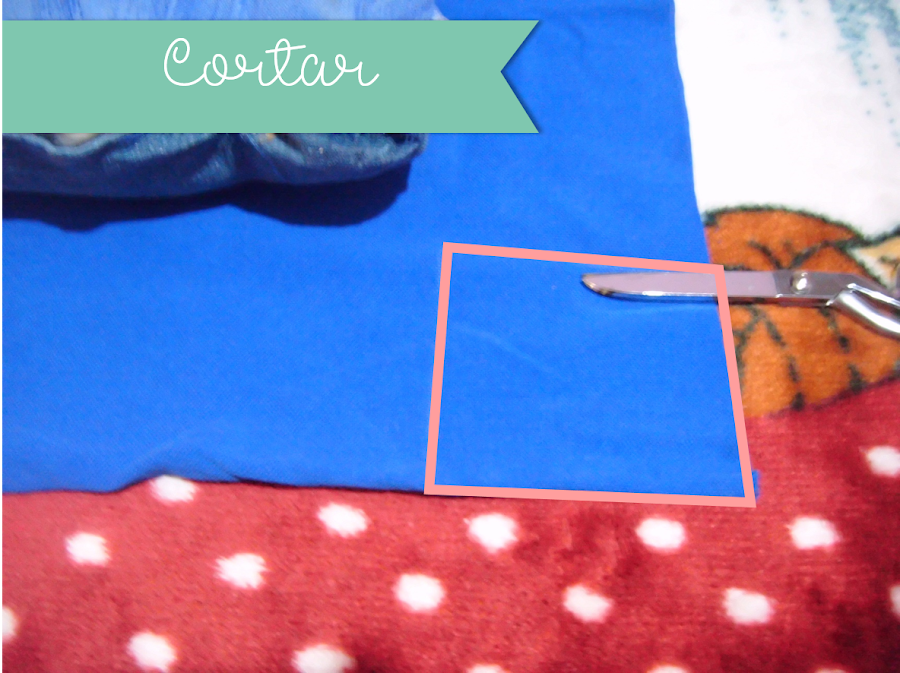 Vamos a poner el cojín en el centro y a cortar de tal manera que quede un cuadro unos diez o quince centímetros más grande que el cojín. De preferencia corta a la altura de las mangas para que no te valla a faltar ni un centímetro y ya después cortas el sobrante.