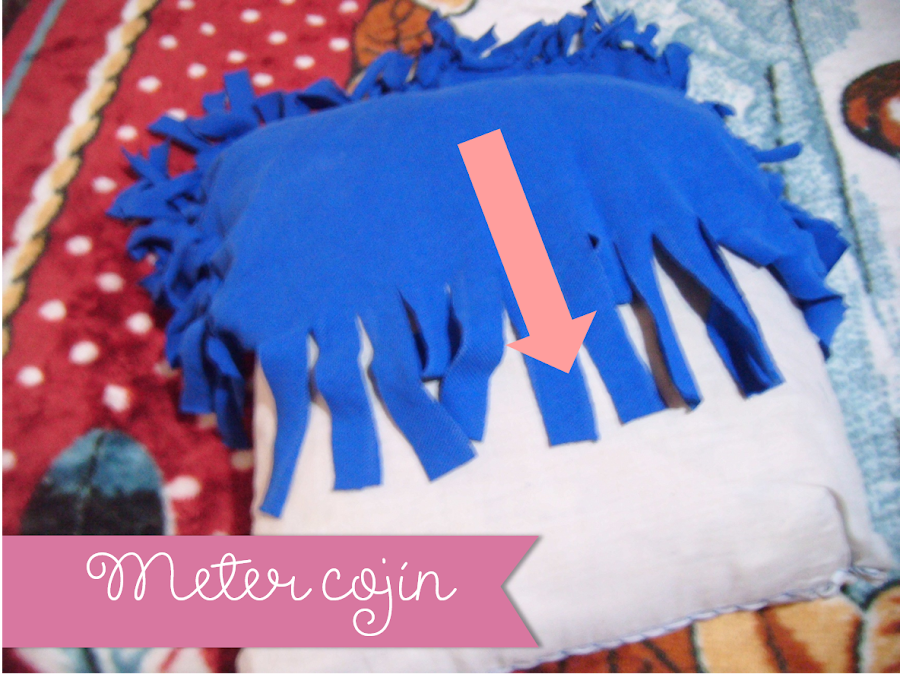 Ya es tu decisión cortar los flecos o dejarlos largos, a mí me gusta como se ven largos. También puedes decorar con otros materiales el nuevo cojín, yo decidí dejarlo así porque combina perfecto con mi sillón. Y ya estaría listo :D