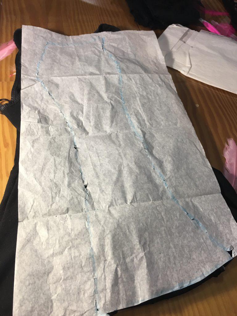 Probando la plantilla de la zona a cubrir con encaje. Esta tiene que ser perfecta para luego recortar bien el encaje que sustituirá al cuero sintético