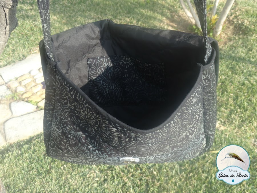 En la siguiente fotografía el bolso está vuelto del revés, pues así se aprecia mejor el interior.