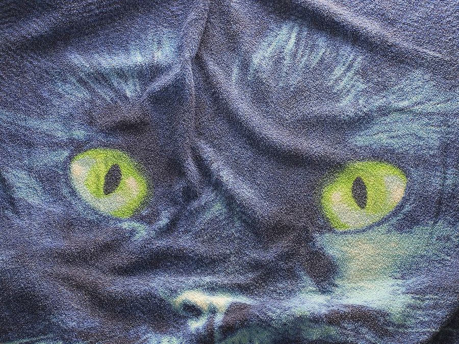 Aunque las expertas en tela desaconsejan pintar las toallas con los productos habituales que tan buen resultado dan en camisetas y zapatillas, no podemos evitar la tentación de probar suerte con un adorno discreto, sin coger mucha superficie. Como estos ojos de gato que resaltan divinamente sobre el fondo azul.