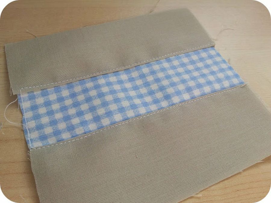 1. Recortó cuatro rectángulos de la tela marrón y dos de la de cuadros.