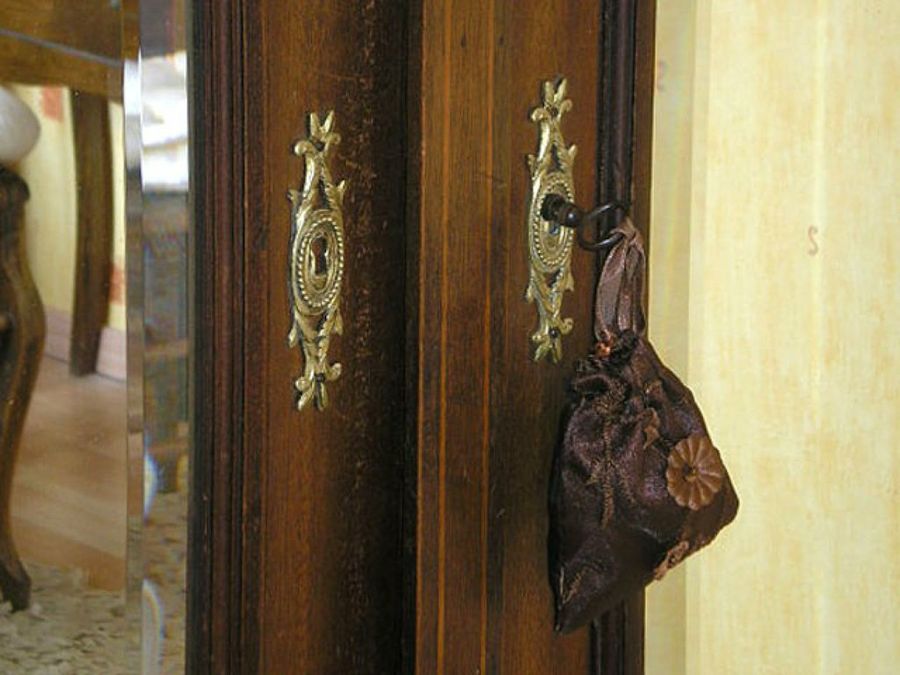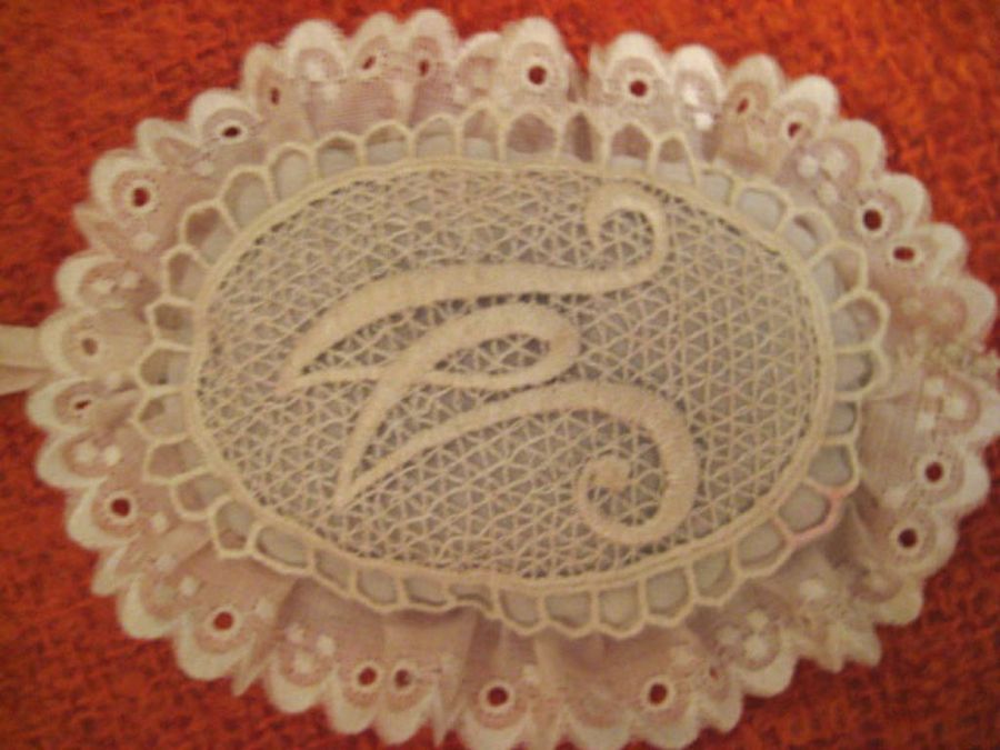 Enmabovary acostumbra a regalar elegantes perfumeros a sus amigos. Compra en las mercerías iniciales bordadas, y las cose en saquitos de tela que rellena con lavanda. Una vez adornados con un volante de tira bordada o encaje, les pone una lazada de raso para colgar.