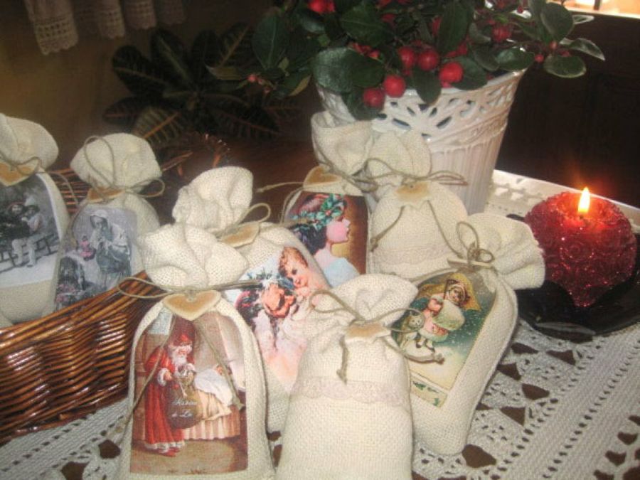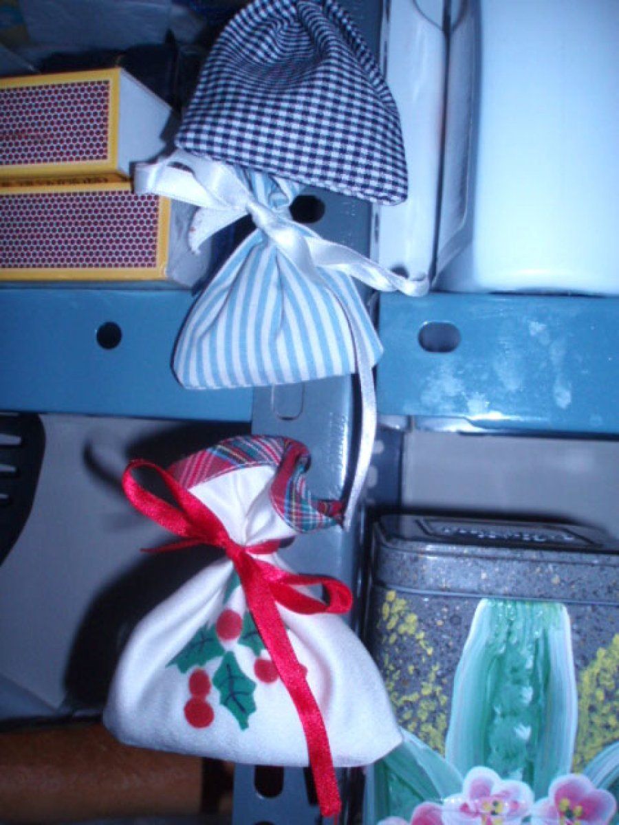 El simpático diseño de Lalyco fue un regalo para otra forera, Petitange. Podemos economizar más aún siguiendo el consejo de Artcecilia, que aprovecha trozos de tela para hacer bolsitas y rellenarlas de especias como lavanda, romero y laurel.