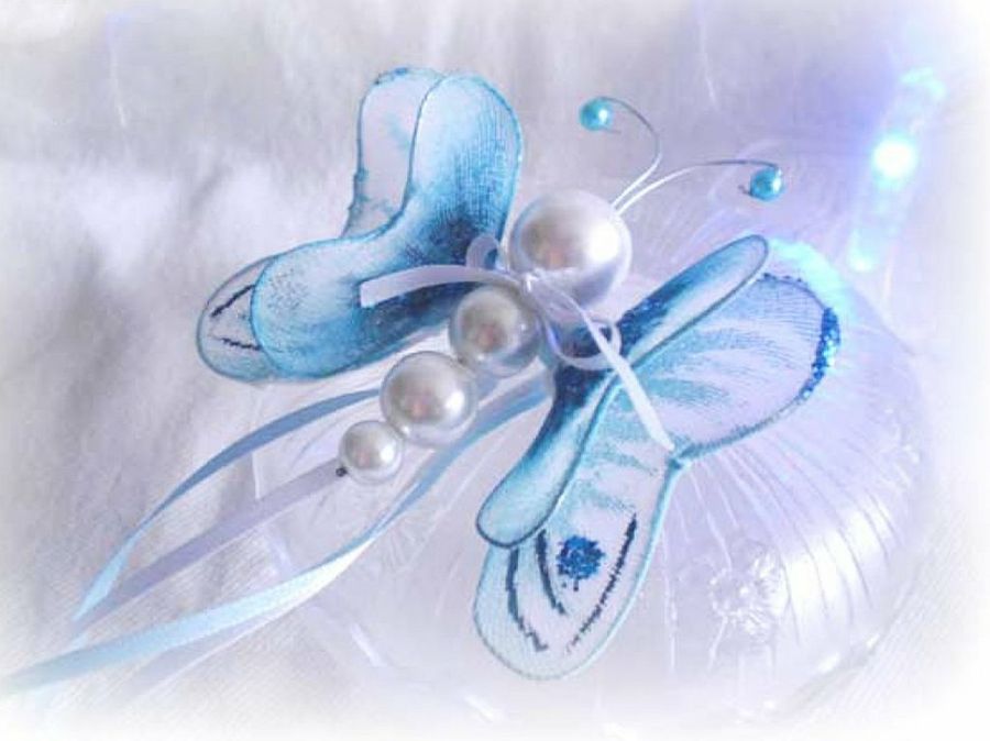 Según aicuL, los adornos de esta mariposa que se vendía en un mercado medieval son de purpurina, por ello no hace falta coserlos. “Creo que bastaría echar pegamento dando la forma deseada, espolvorear la purpurina y luego sacudir el resto. Me parece sencillo, creo que voy a intentarlo”, declara nuestra sagaz forera. ¡Tomad nota de su práctico consejo!