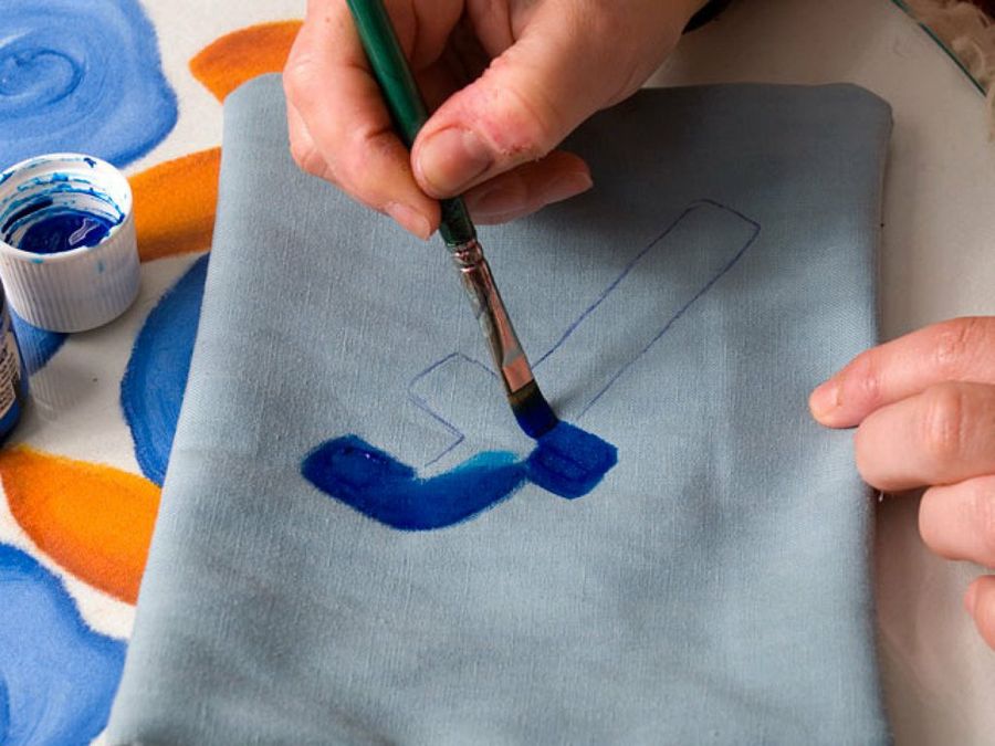 La silueta ha quedado impresa en la tela. La dibujamos con el mismo bolígrafo, y ya podemos pintarla en el color que nos guste, siempre con una pintura para tejidos de la mejor calidad.