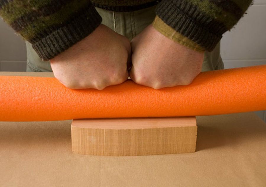 Nuestro material cumple otro requisito: el relleno del ‘beanbag’ debe permitir que la cámara se amolde pero sin hundirse. Por eso no sirven materiales como el algodón. Haciendo fuerte presión, comprobamos que el flotador es flexible pero no se deforma ilimitadamente.