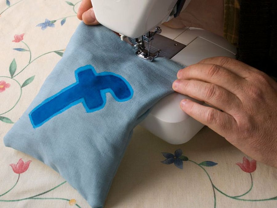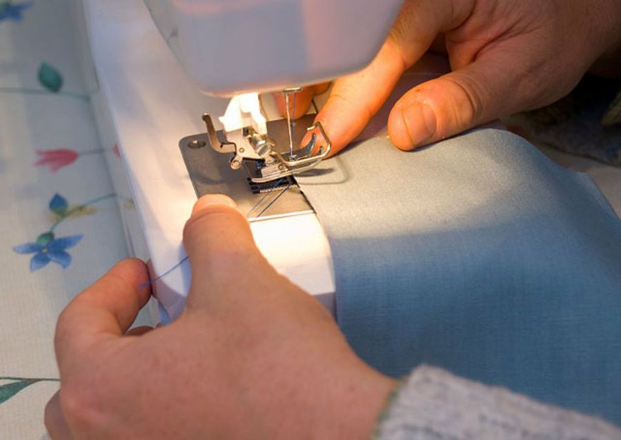 Ponemos las telas juntas y las montamos con la máquina de coser.