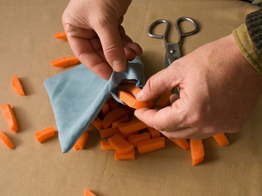 Metemos el relleno definitivamente, y cerramos la costura. Como detalle de interés para los aficionados a la fotografía de naturaleza, diremos que nuestro beanbag pesa menos de 20 gramos. El peso del equipo es un factor que se hace notar mucho en largas caminatas.