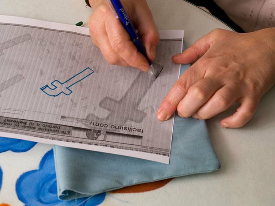 Para rematar la tarea vamos a personalizar nuestro ‘beanbag’. Le pondremos la F de Facilisimo.com, y la misma técnica os servirá para cualquier dibujo que os guste. Sacamos por pantalla el motivo, y marcamos el contorno sobre la tela repasándolo con un bolígrafo.