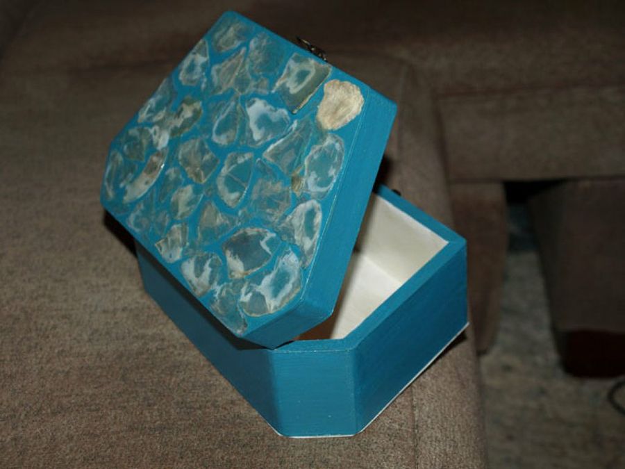 Con piezas de nácar, Isisyr ha decorado una caja de fantasía.