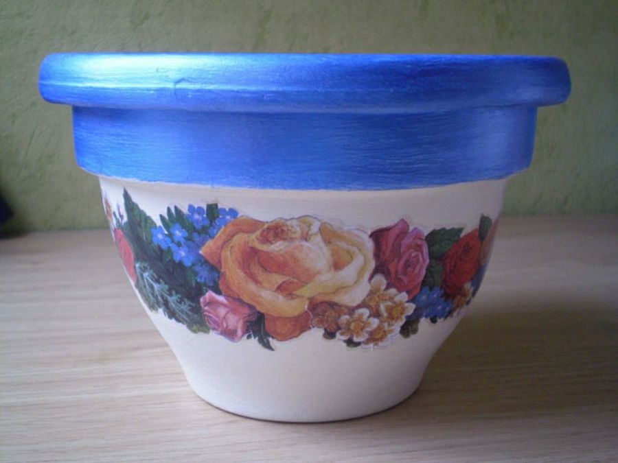 Karmen tiene gran afición por el adorno de macetas, como vemos en esta bella pieza.