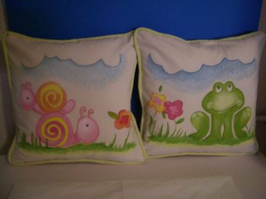 Los cojines también pueden ser un complemento ideal para resaltar un cuarto. Además, son fáciles de hacer, con un tejido cortado por duplicado, unimos las costuras y, antes de cerrarlas definitivamente, insertamos guata o algodón para darle un aspecto más esponjoso y confortable.La usuaria Monane ha pintado a mano estos cojines encargados para una tienda infantil. Ha usado tonalidades muy alegres para dar vida a estos animalitos. Todos son diferentes entre sí pero forman un fantástico conjunto. También se pueden adornar con partes tejidas para darle un mayor contraste.