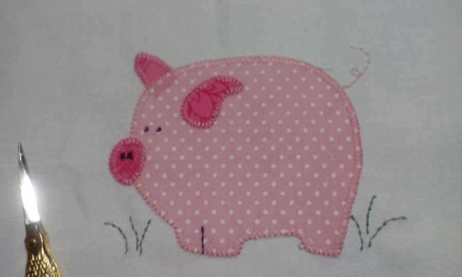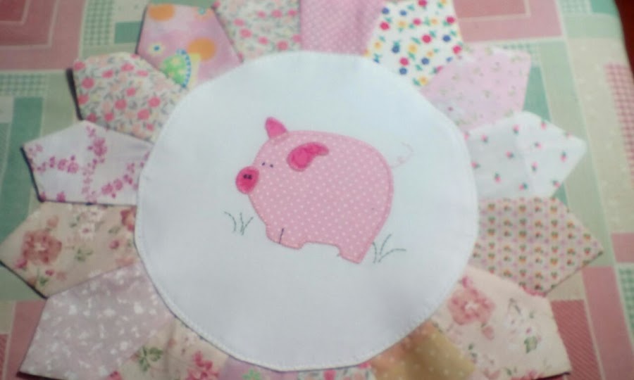 Y el cerdito aplicado. Hace meses que quería hacer un cerdito, ya fuera aplicado o un muñeco tipo cojín. Me encantó! Me parece tan cuchi...