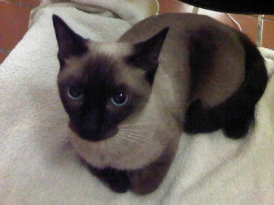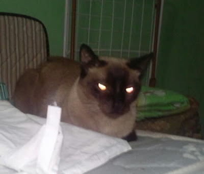 Y mírenla ahora, jejejeje... Parece sacada de una película de terror. Pero no es tan traviesa como reflejan esos ojitos. Aunque en su relación con otros gatos sí es agresiva. Con los humanos es más dócil....