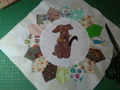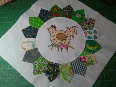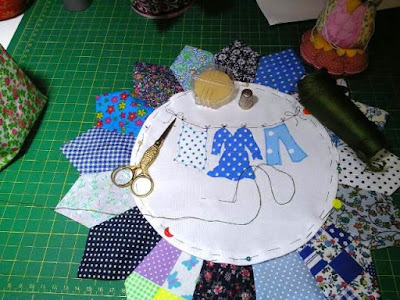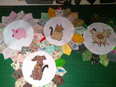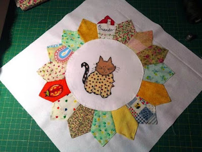 Ya la parte que corresponde a los platos Dresden está completa. Ahora vamos por otra fase donde colocamos aplicaciones directas en los cuadrados de tela. Estas son las aplicaciones que me faltaban para los platos Dresden...