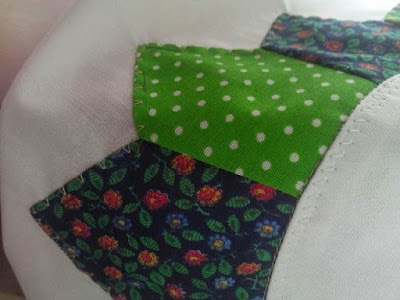 Una vez hechas, me dediqué a colocar cada una sobre su correspondiente plato. Preferí bastearlas primero. Les comento que yo ODIABA bastear los trabajos porque sentía que perdía el tiempo. Ahora sé que el bastear te ahorra tiempo, ya que sostiene las telas exactamente donde las quieres y no necesitas estar rectificando. Ahora el hilo de bastear es uno de mis mejores amigos, jejeje. Por cierto, no se si a ustedes les ha pasado, pero a algunos de mis conos de hilo se les ha partido el centro de plástico y he tenido que usarlos para hilvanar mis trabajos porque ya no se pueden usar en la máquina. ME GUSTARÍA MUCHO que me contaran si les ha pasado...