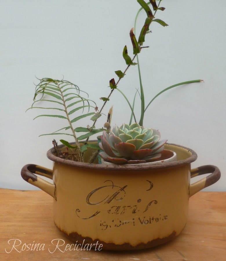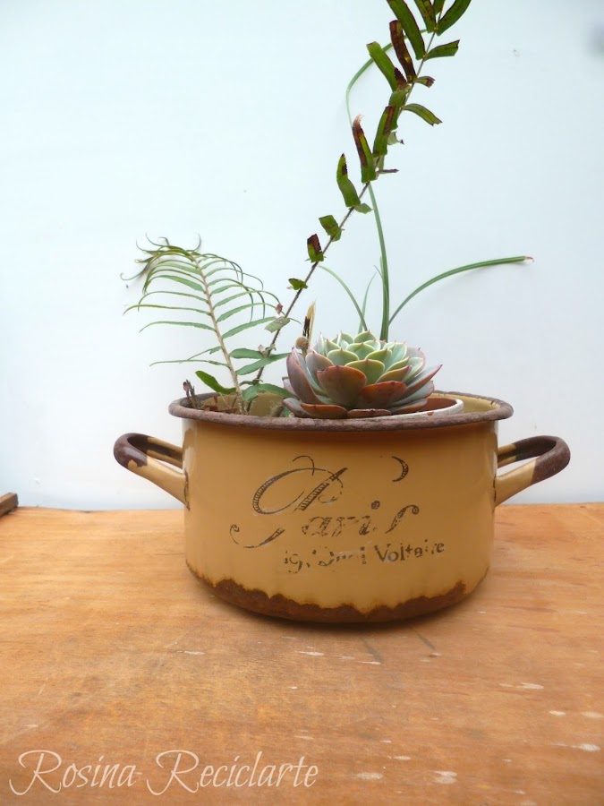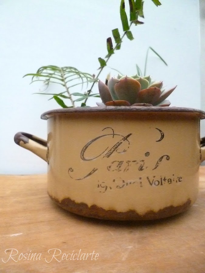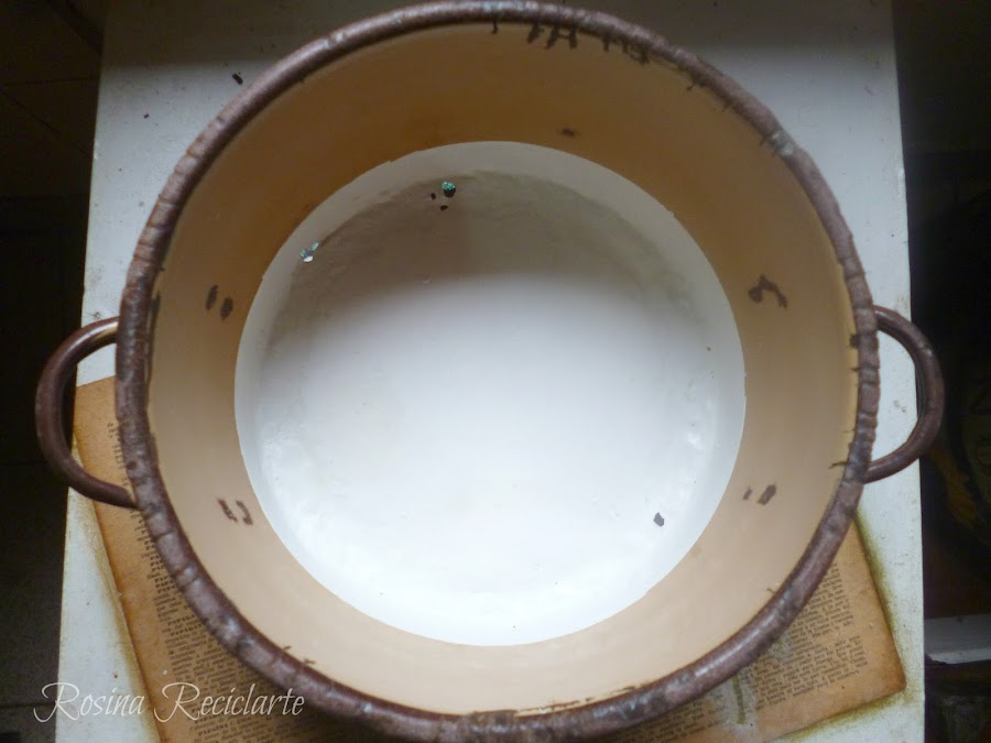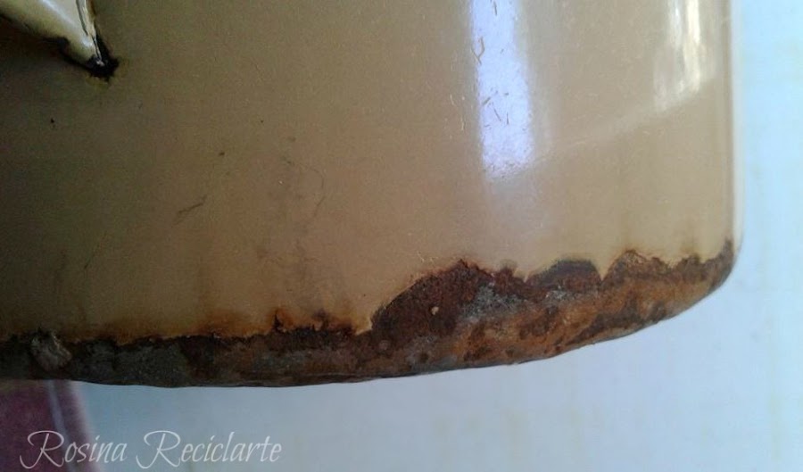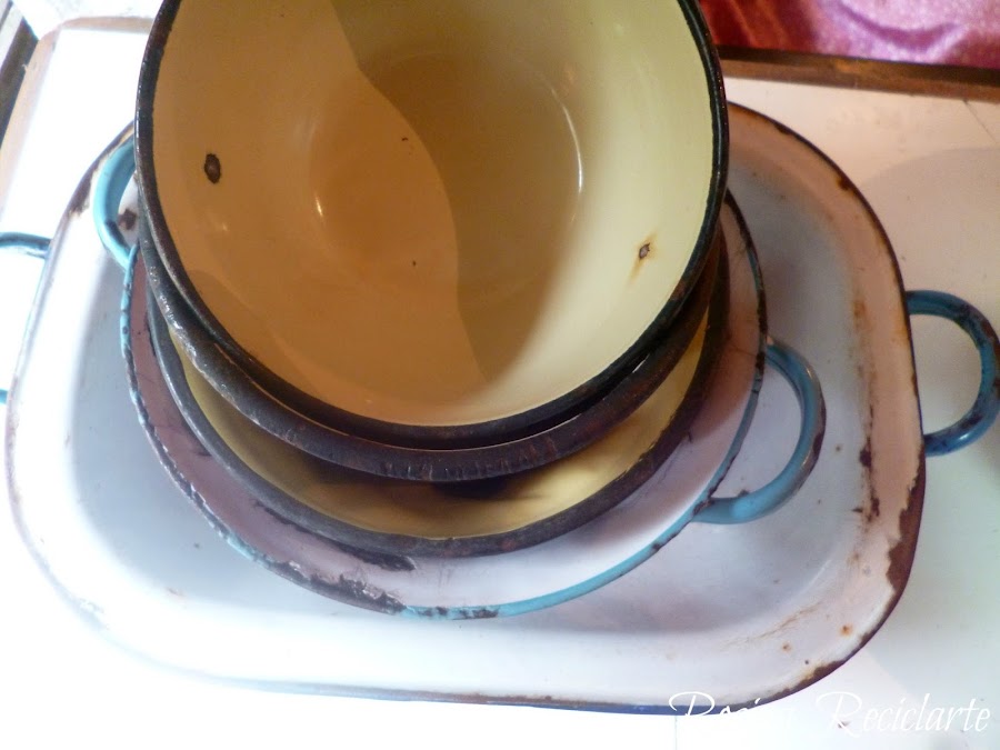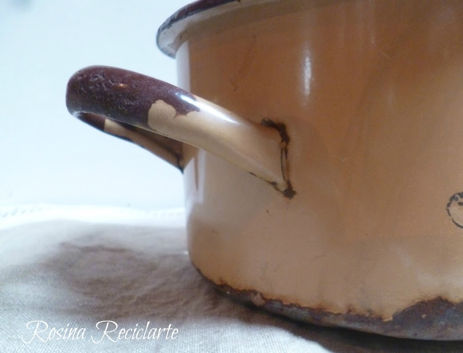 Una de las cosas que estuve rescatando fue esta cacerola esmaltada y bastante deteriorada,tanto que dudé si era factible de ser usada o mejor dicho re usada.