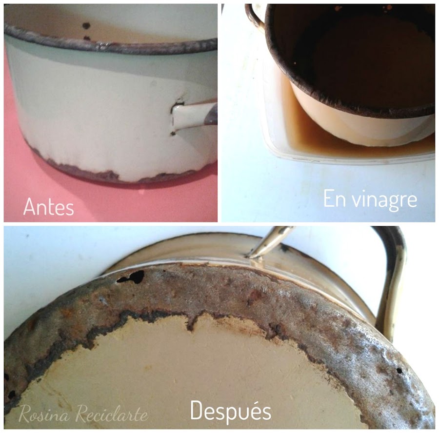 Me puse manos a la obra,¿te acordás cuando compartí las formas de teñir madera en forma natural ? Usé vinagre con clavos oxidados para lograr uno de los tintes,entonces usé la lógica,si sacaba el óxido de los clavos también sacaría el de la cacerola.