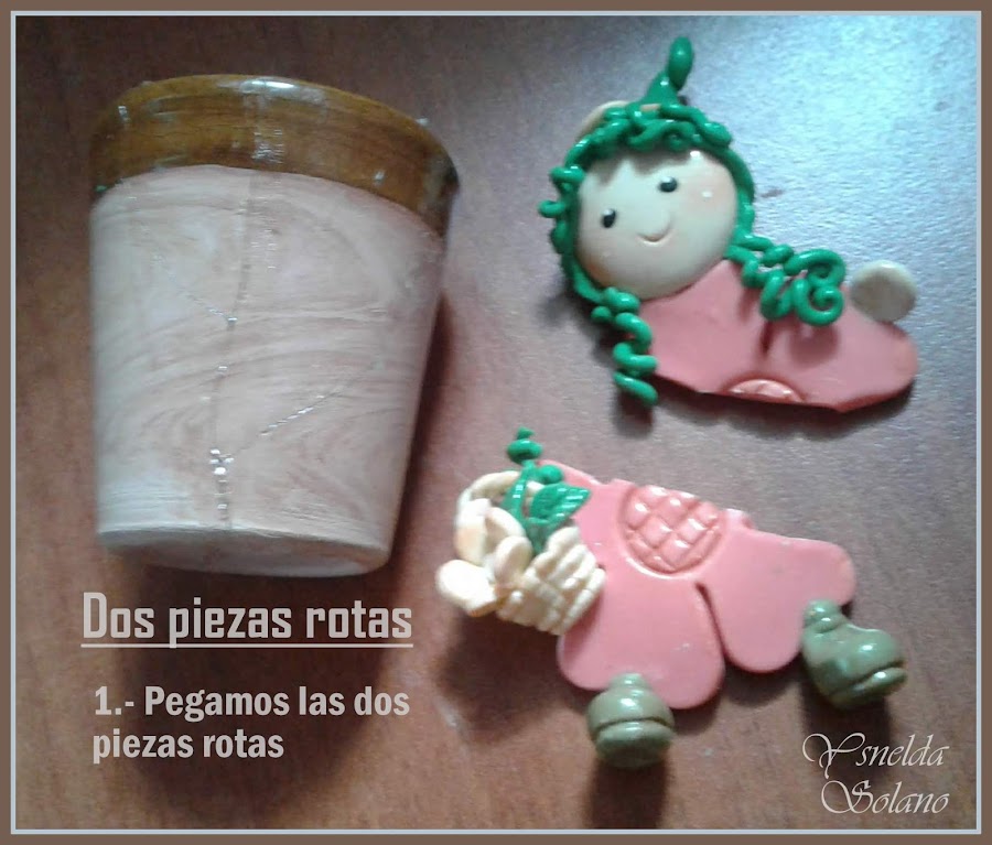 Este pequeño vaso cayo al suelo y se quebró, lo pegue pero se veían las uniones por todos lados. De igual manera esta piecita de porcelana fría, se deslizó de mis manos y se partió en dos. Así que primeramente las pegue, para luego unirlas y con porcelana fría tapar todas las uniones producto de la caída y posterior reparación.