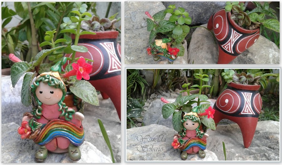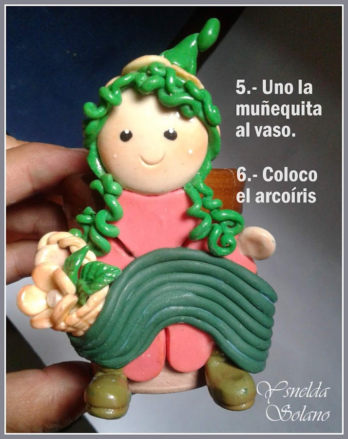 El mini vaso lo pegué con silicona y la flor con un poquito de masa de porcelana fría y cola blanca.