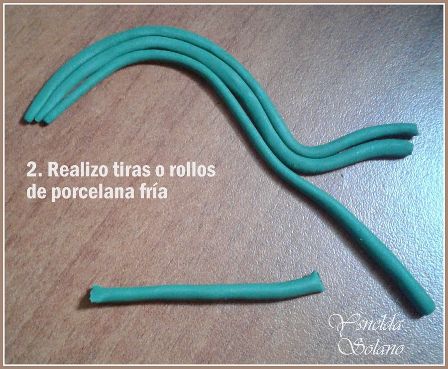 Todas esas feas uniones de lo roto del vasito las tape con porcelana fría: hice rollitos para simular tallos y pequeñas hojas verdes.