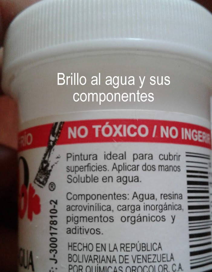 Me encanta darle ese brillito a la porcelana fría, uso mi brillo al agua, cuyos componentes son los siguientes.