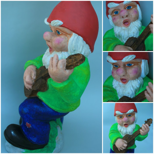Pensé en variarle los colores pero luego decidí dejarle los que tenía, bueno, al menos entre lo poco que pude verle. Como es una figura para el jardín, creí que lo más apropiado serían los acrílicos.