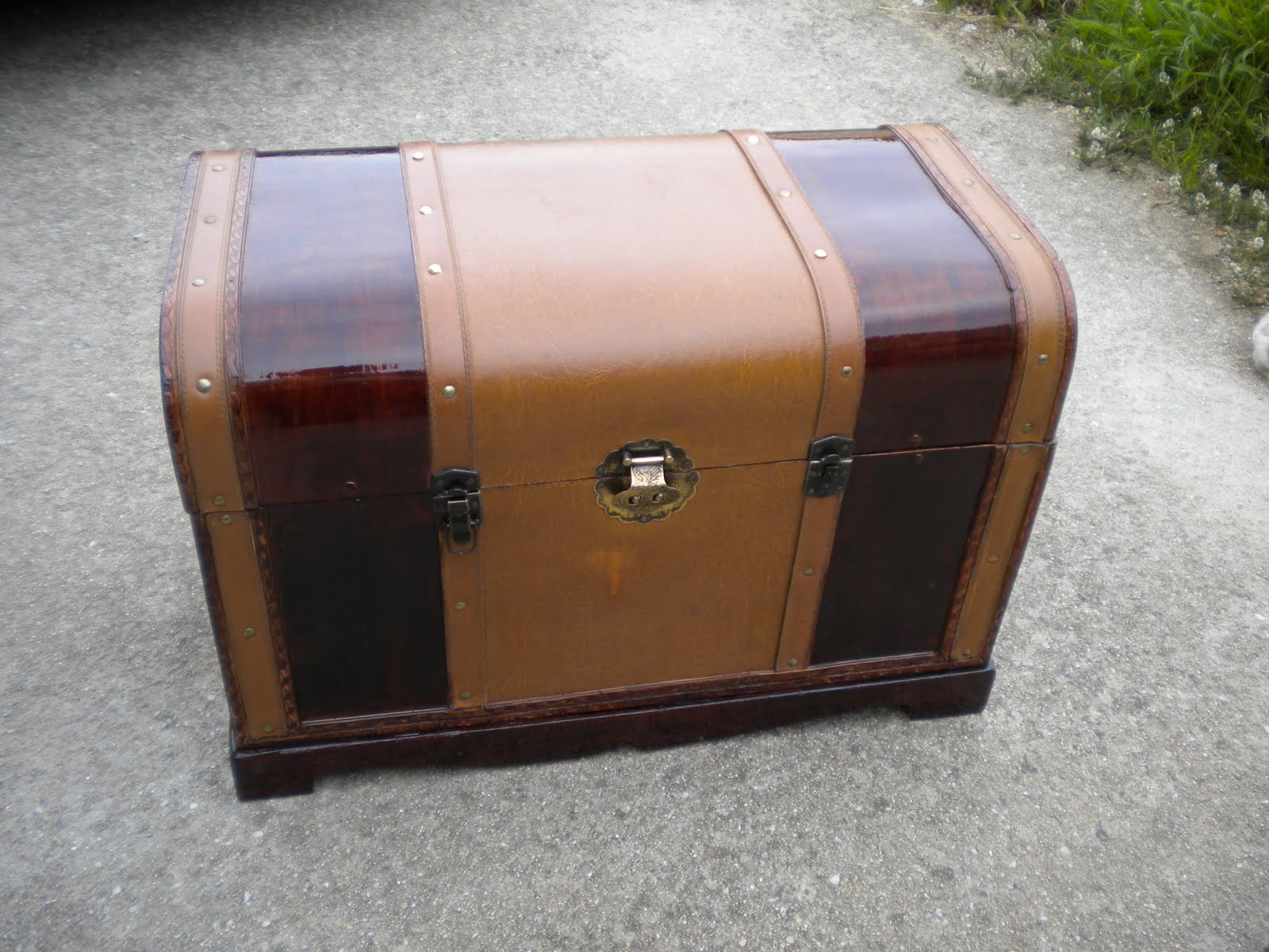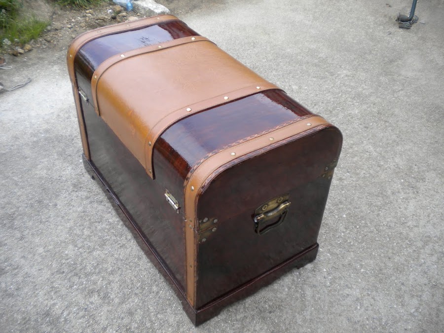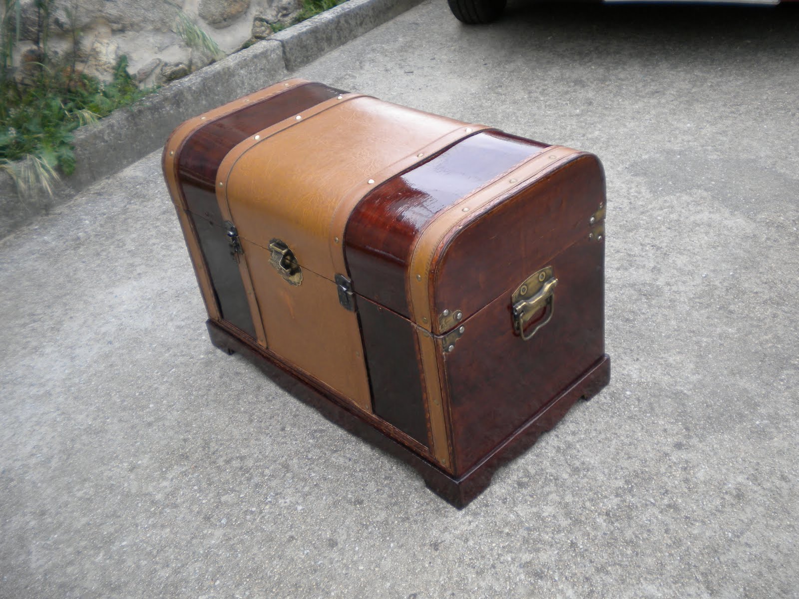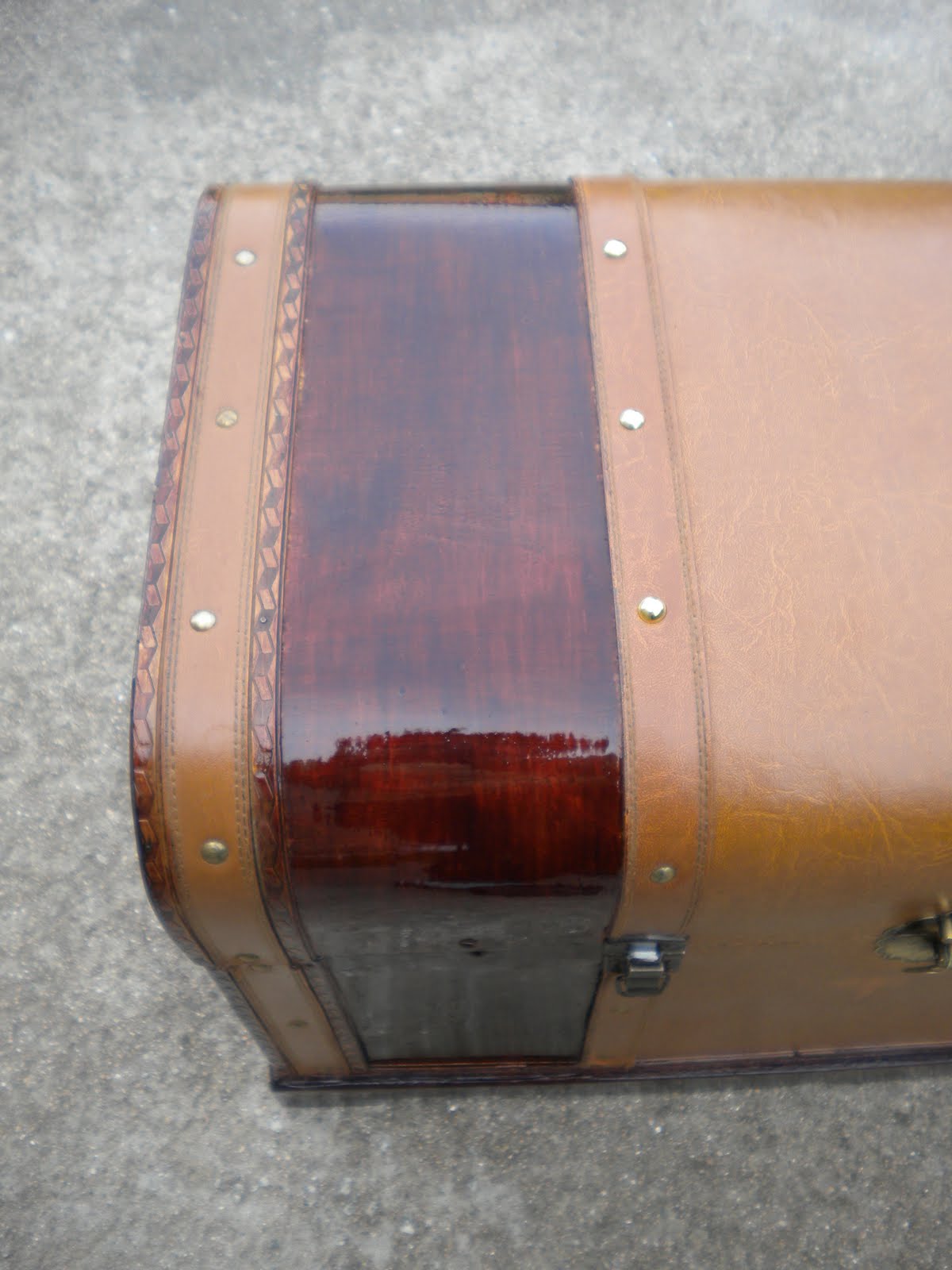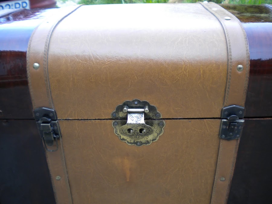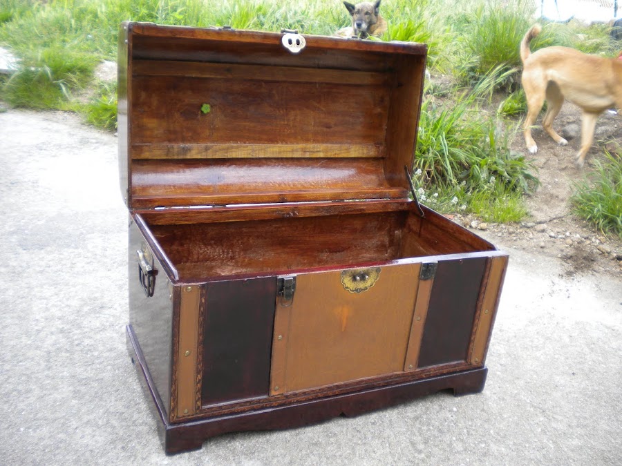 Primero lo aspiré bien, lo lavé con un paño húmedo con agua caliente y un pelín de amoníaco. Después de estar seco, lo lijé lo más que pude. Me costó mucho. El baúl se conservaba bastante bien porque en su momento debio ser bien tratado. Fué muy difícil sacarle una grasilla que tenía. Parecía como si hubiera sido encerado.