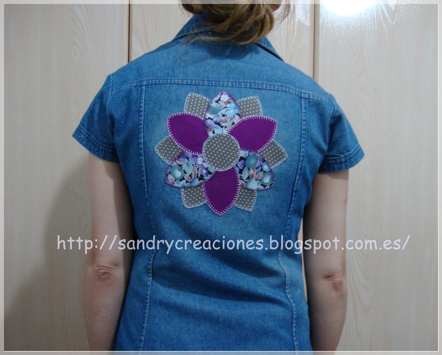 Iniciamos una nueva semana, la última de agosto, con un pequeño arreglo que le hice a un vestido de mi madre, al que le había quedado una parte de la espalda gastada, para que lo pudiera seguir llevando unos añitos más. Y como la parte gastada era bastante ancha se me ocurrió hacerle una aplicación de patchwork en forma de flor.