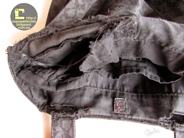 También ha habido reparaciones varias, como este bolso que ha encontrado mi hija en su "baúl de los tesoros". Dice que fue de los primeros, sino el primero, bolsos que se compró, estaba destrozado pero sabía que mamá se lo podía arreglar.