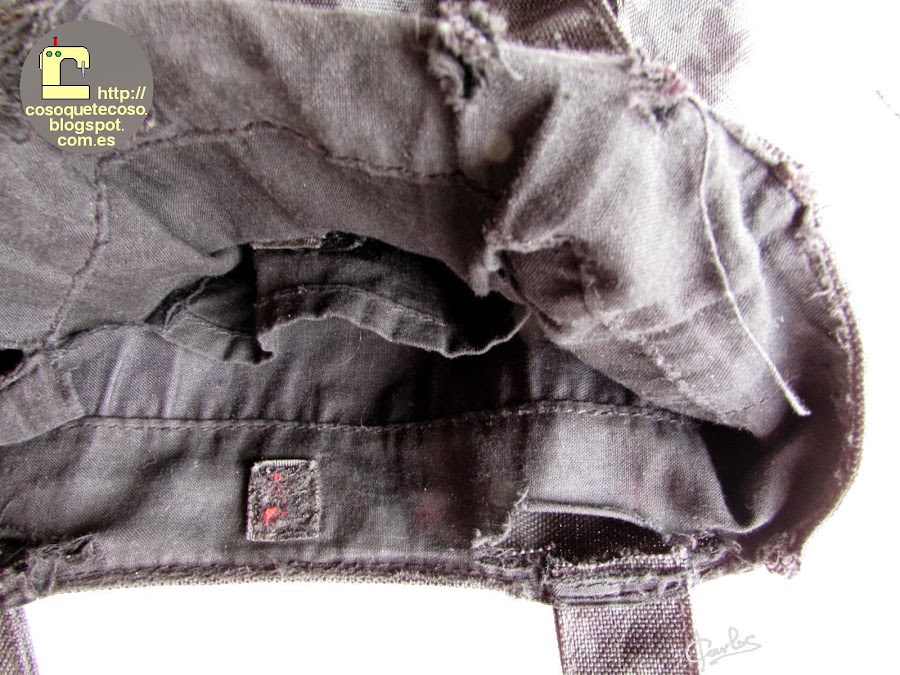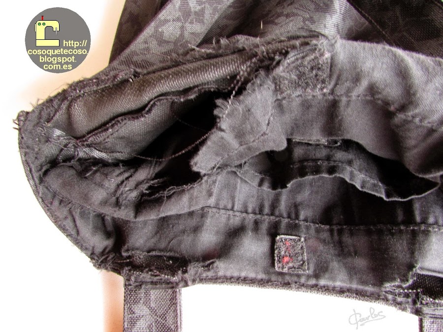 Le he tenido que poner una pieza de tela doble porque no había por donde "remendar".