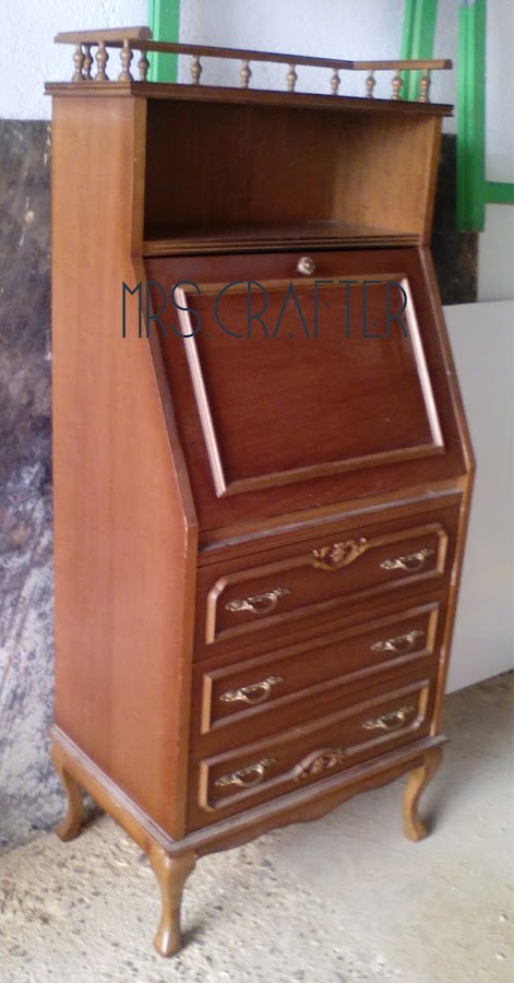 Hace tiempo que tenía ganas de encontrar un mueble donde guardar todos los materiales de scrapbooking. Aunque los tenia colocados en cajas , carpetas, ficheros...., quería que no estuvieran a la vista.Pero he tenido que esperar al verano para poder ponerme con ello.Lo primero era encontrar el mueble apropiado: ¿Sólo estanterías?¿Quizás una mesa debajo con cajones?Pero este bureau apareció ante mis ojos y fue amor a primera vista.